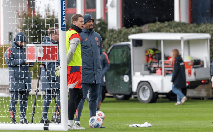队长曼努埃尔-诺伊尔完成了完整训练。这位40岁的门将自左小腿肌肉纤维撕裂后恢复良好,按计划将在周六客场对阵弗赖堡的联赛中重返球门。拉斐尔-格雷罗(合同今夏到期)同样参与了合练。